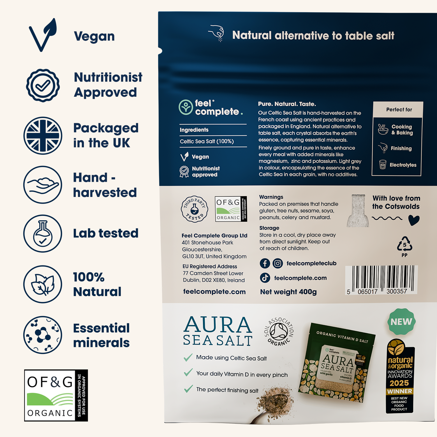 Finely ground and pure in taste, enhance every meal with added minerals like magnesium, zinc and potassium. Light grey in colour, encapsulating the essence of the Celtic Sea in each grain, with no additives.
