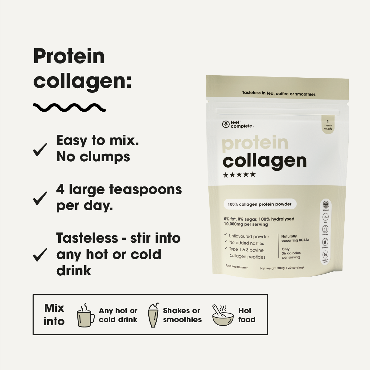 Introducing Feel Complete Protein Collagen Powder: the perfect powder to add to any drink to create new and attractive functional drinks.